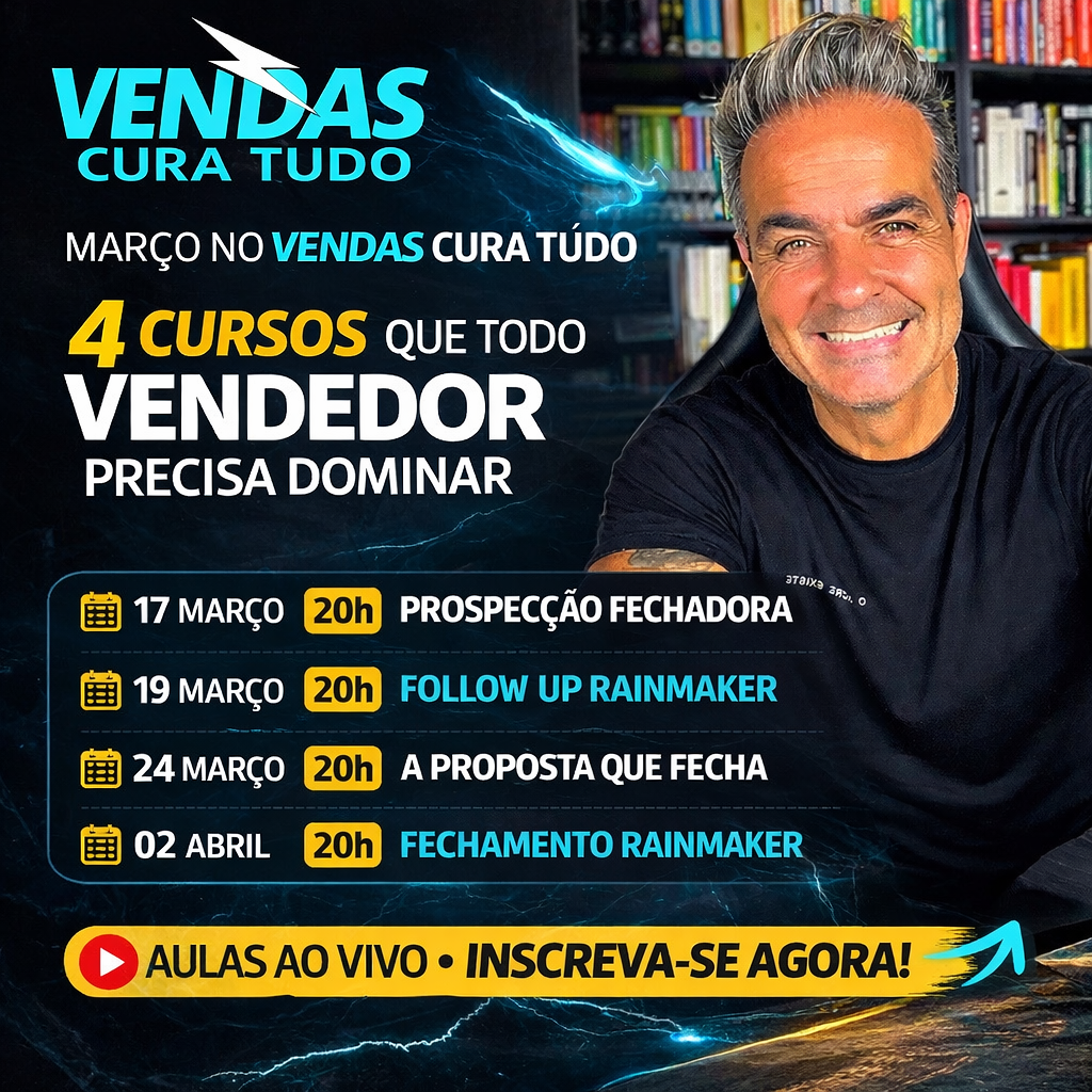 Se você é responsável por fazer o negócio vender, mesmo que sozinho, mesmo que do zero, o Vendas Cura Tudo foi feito pra você.